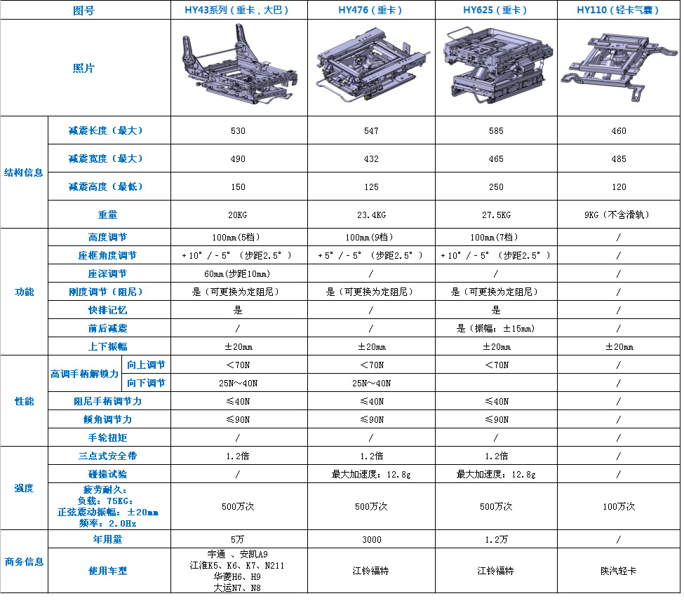 本公司獨(dú)立設(shè)計(jì)開發(fā)的產(chǎn)品有:依維柯駕駛座椅滑軌、調(diào)角器,并獲得國(guó)家專利;雪鐵龍轎車座椅滑軌,并經(jīng)過法國(guó)雪鐵龍的認(rèn)可;歐曼重型卡車的升降器、減震器;海南馬自達(dá)滑軌、江淮旅行車滑軌、英格爾滑軌、調(diào)角器、三菱汽車座椅骨架;江淮瑞風(fēng)商務(wù)旋轉(zhuǎn)機(jī)構(gòu)、滑軌、調(diào)角器。